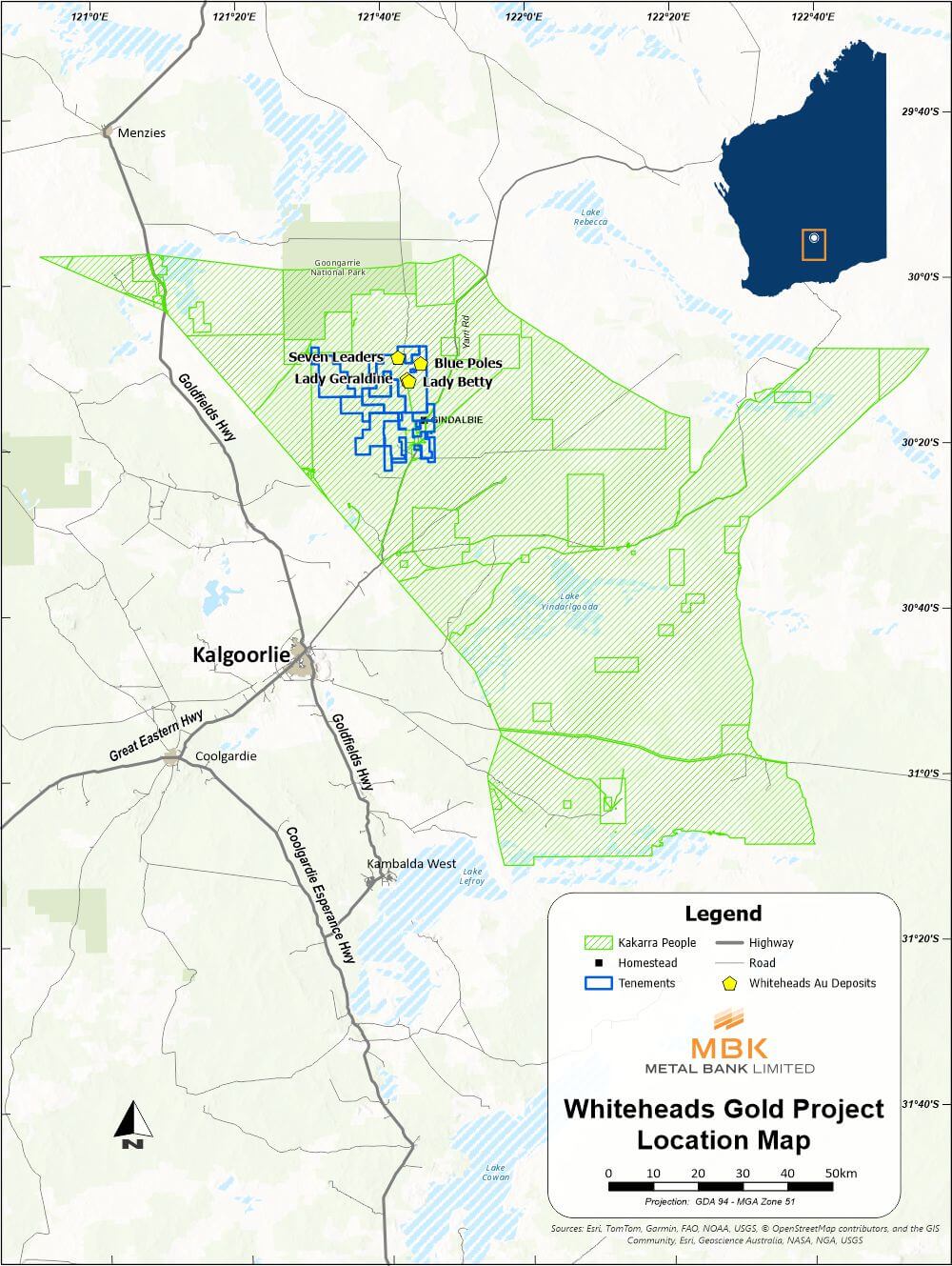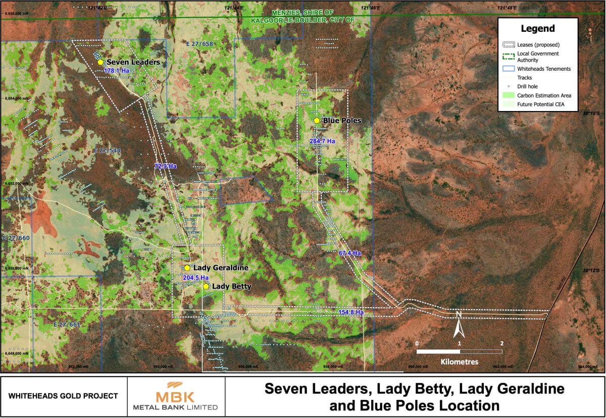 The Whiteheads Project comprises a significant tenement package, including 13 exploration licences, one prospecting licence and 1 mining lease (not currently in production) covering approximately 380 sq kms, with walk-up drill targets, multiple prospects and untested surface gold anomalies. The ownership of the Project was consolidated by Great Boulder Resources (ASX:GBR) with Great Western Gold Pty Ltd, MBK’s wholly owned subsidiary, now holding 100% or 75% for eastern tenements subject to JV with Zebina Minerals